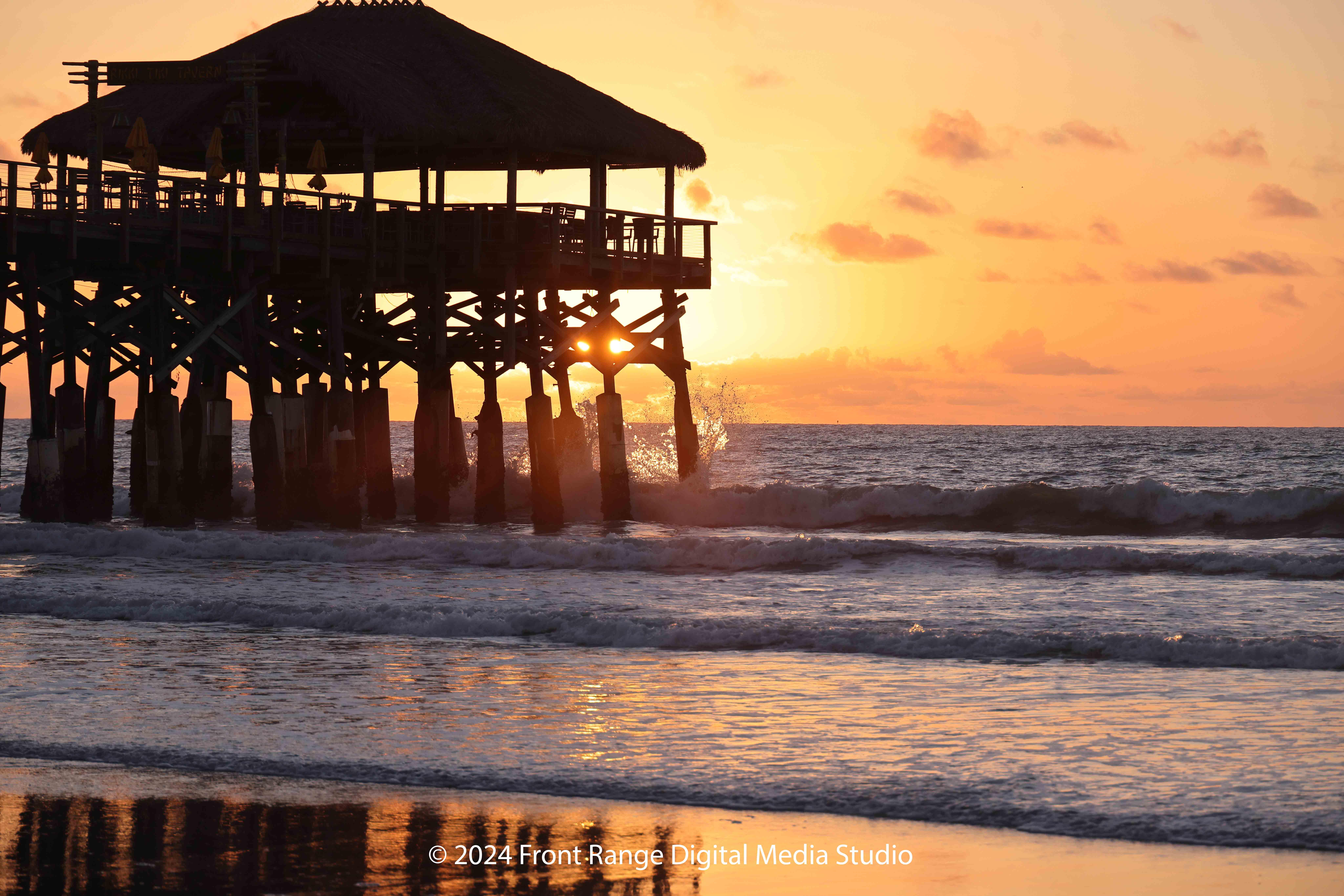 Sunrise through the pilings of Cocoa Beach Pier