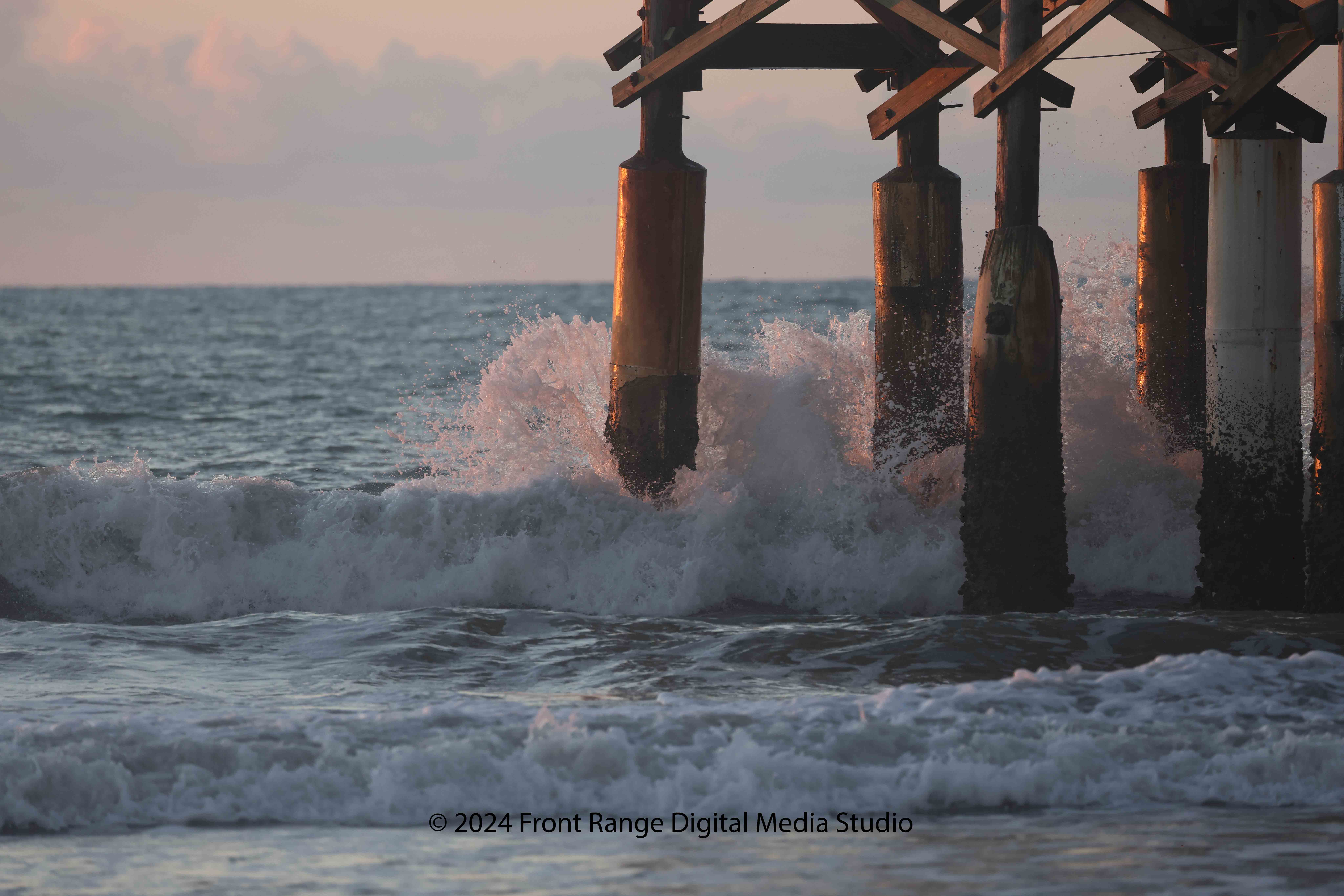 Wave crashing into piling at Cape May, NJ
