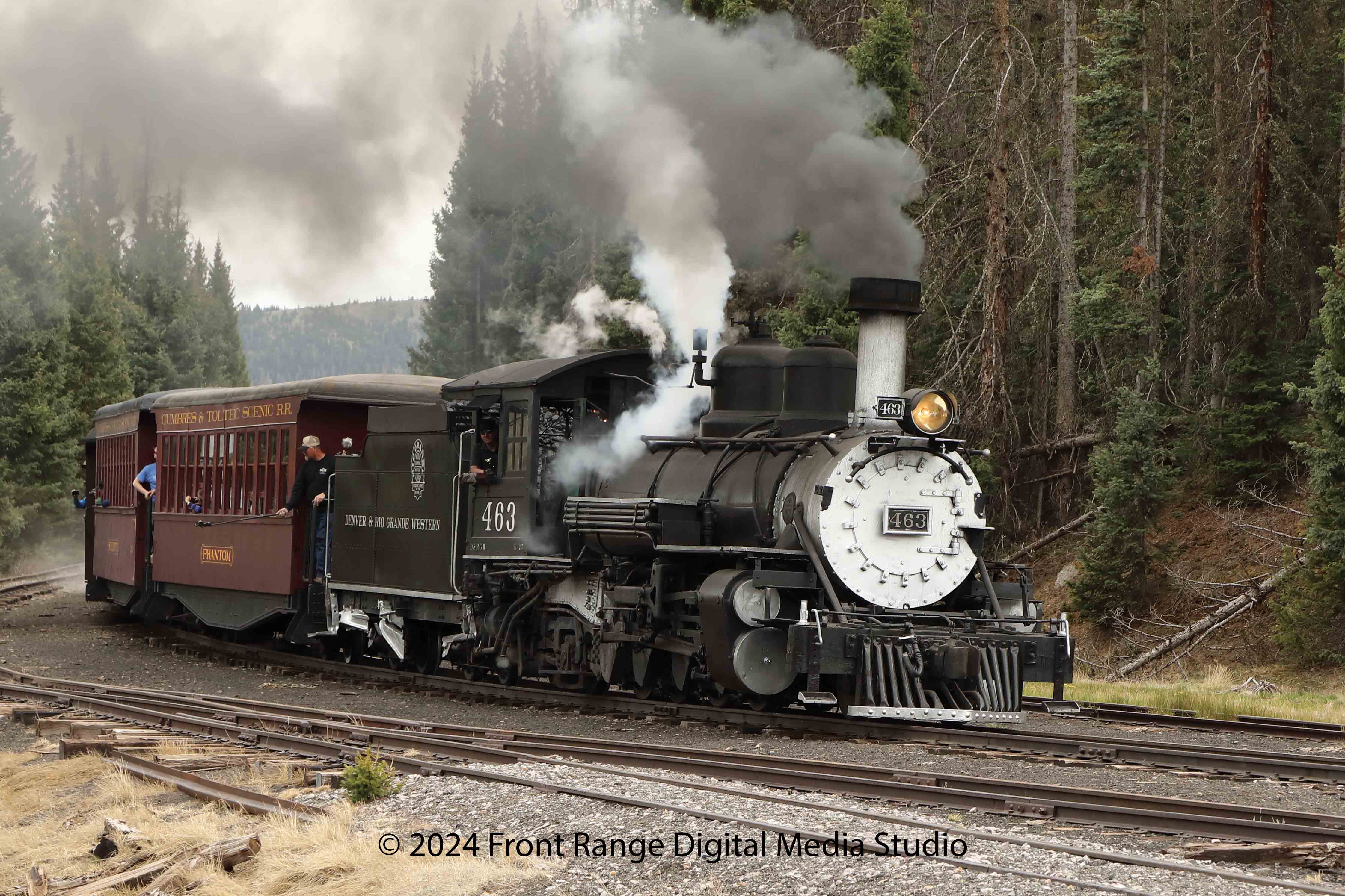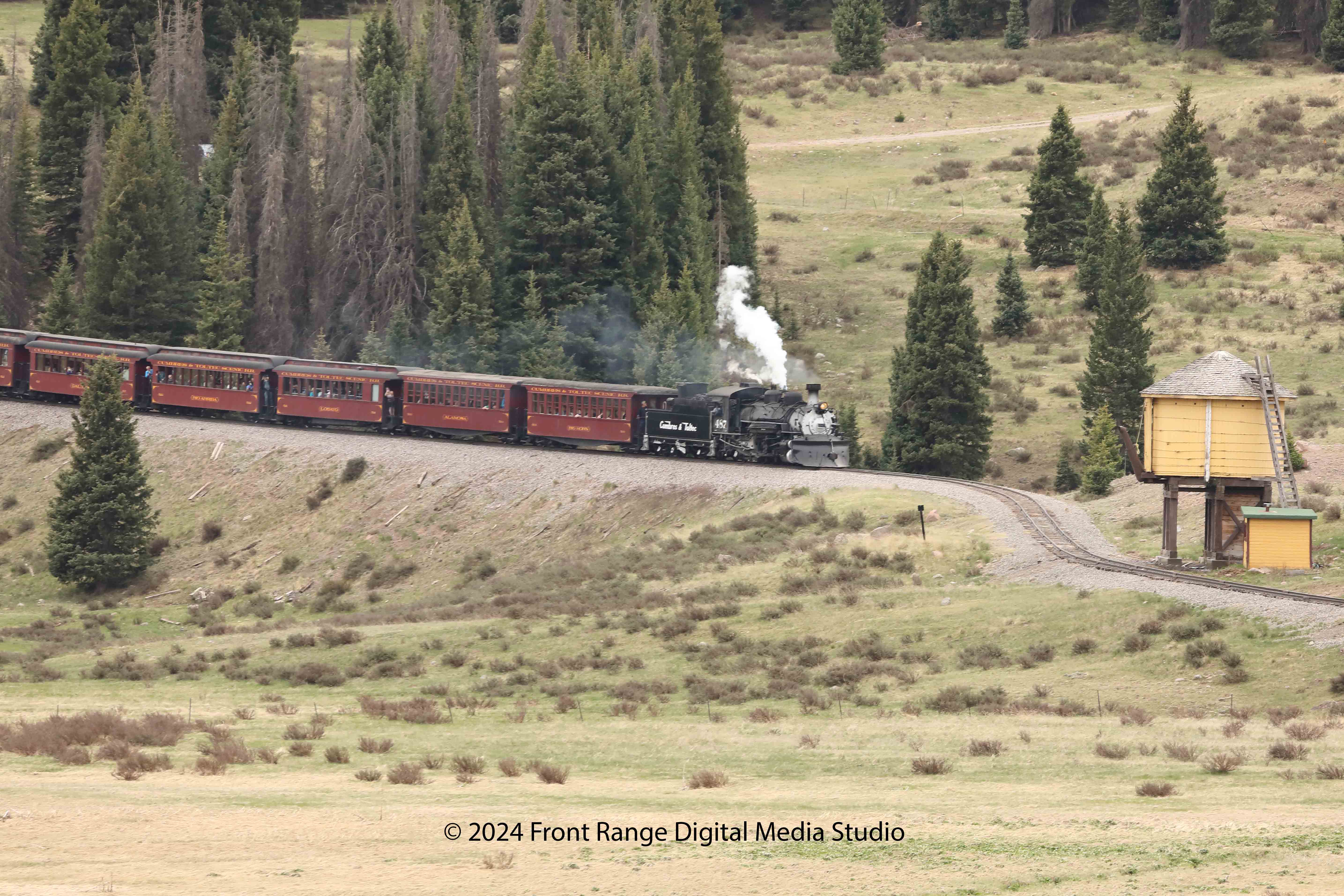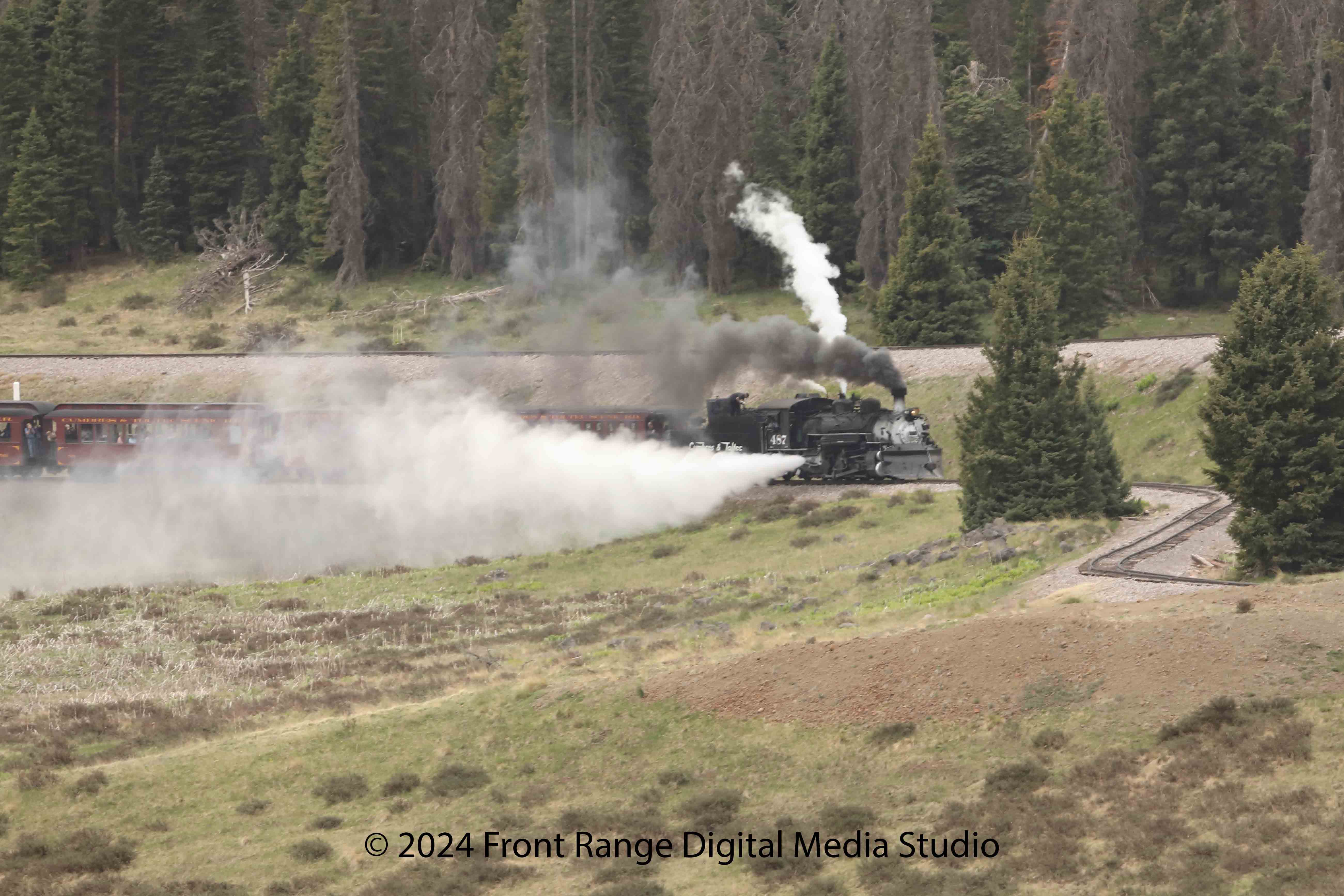 | Train pictures primarily from the Cumbres and Toltec scenic railroad and the Durango and Silverton railroad. These are both wonderful, authentic train rides through Colorado's mountains. Both railroads have converted all their locomotives to burn oil rather than coal, so you don't get covered in soot any more! |